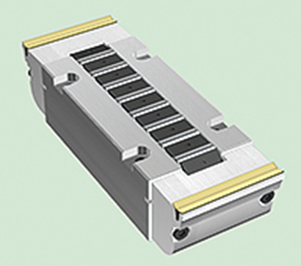 圆柱滚子具有在本体(滚道台)内部循环的功能,从而平面上实现无限直线运动。本体的挡边保持圆柱滚子和保持架于本体内,并引导圆柱滚子和保持架。由于应用保持架,轴承从结构上保证相邻的滚子不接触,实现低摩擦系数。